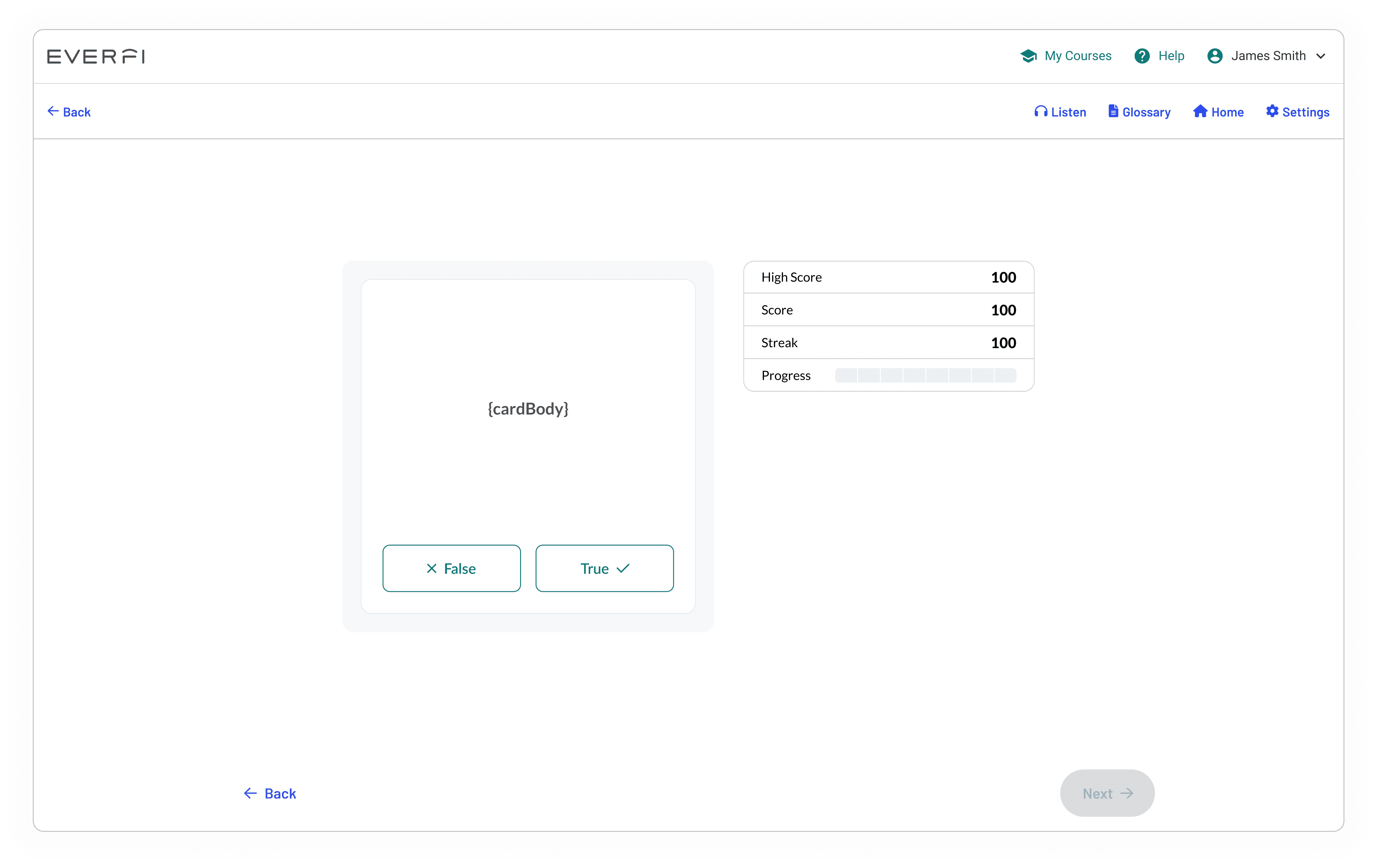 Card game is a multi-faceted component used in Everfi courses to have students quickly apply their knowledge of particular material in a fun and interactive way.