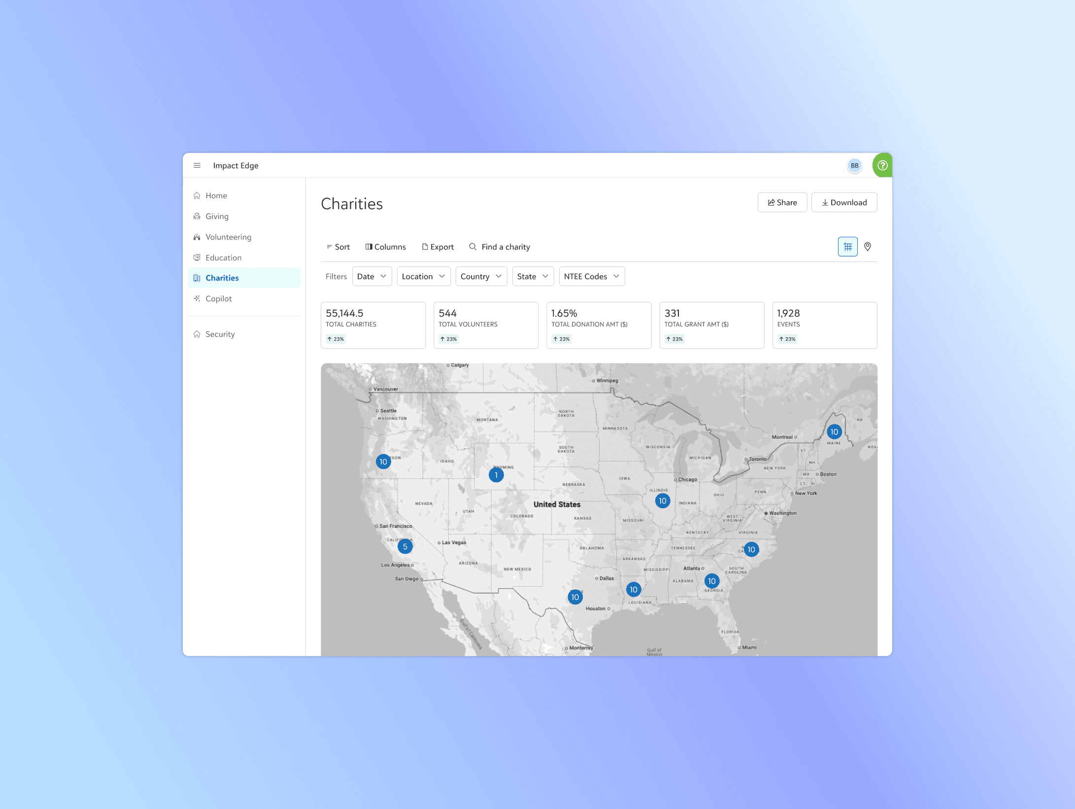 Product came to Alyssa and I with a request to create a new page in Impact Edge specifically for Charities. After a bit of analysis, I uncovered that the site was utilizing iframes from PowerBI to link in companies data. I used this as an opportunity to design and propose an experience that used native design and development tech and create a more cohesive connection between how the data was being visualized.